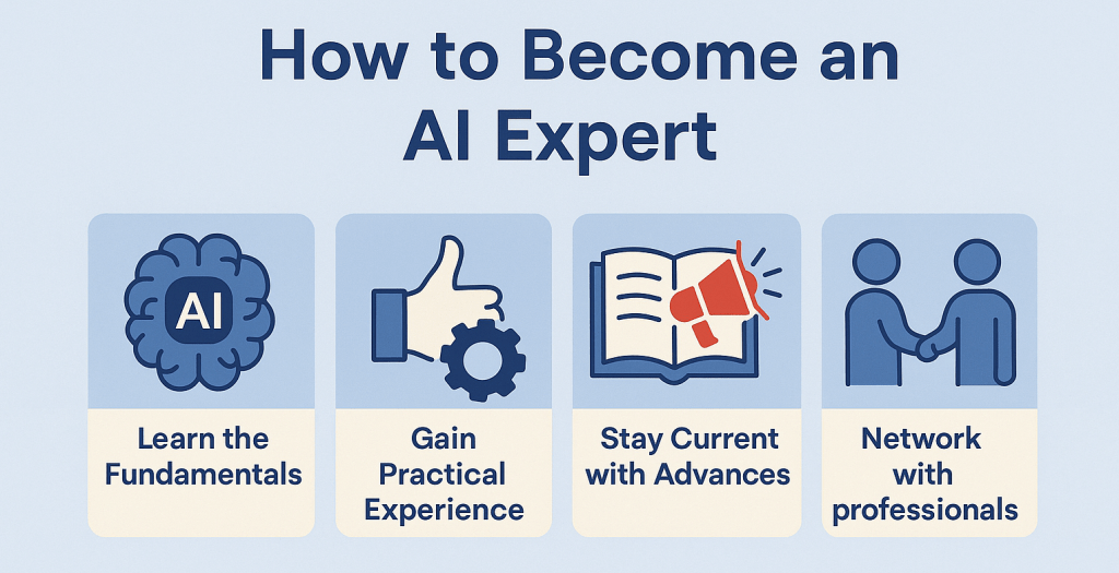 Becoming an AI expert is a journey of consistent learning, experimentation, and curiosity. Whether you’re starting from scratch or transitioning from another field, the tools and resources are more accessible than ever.